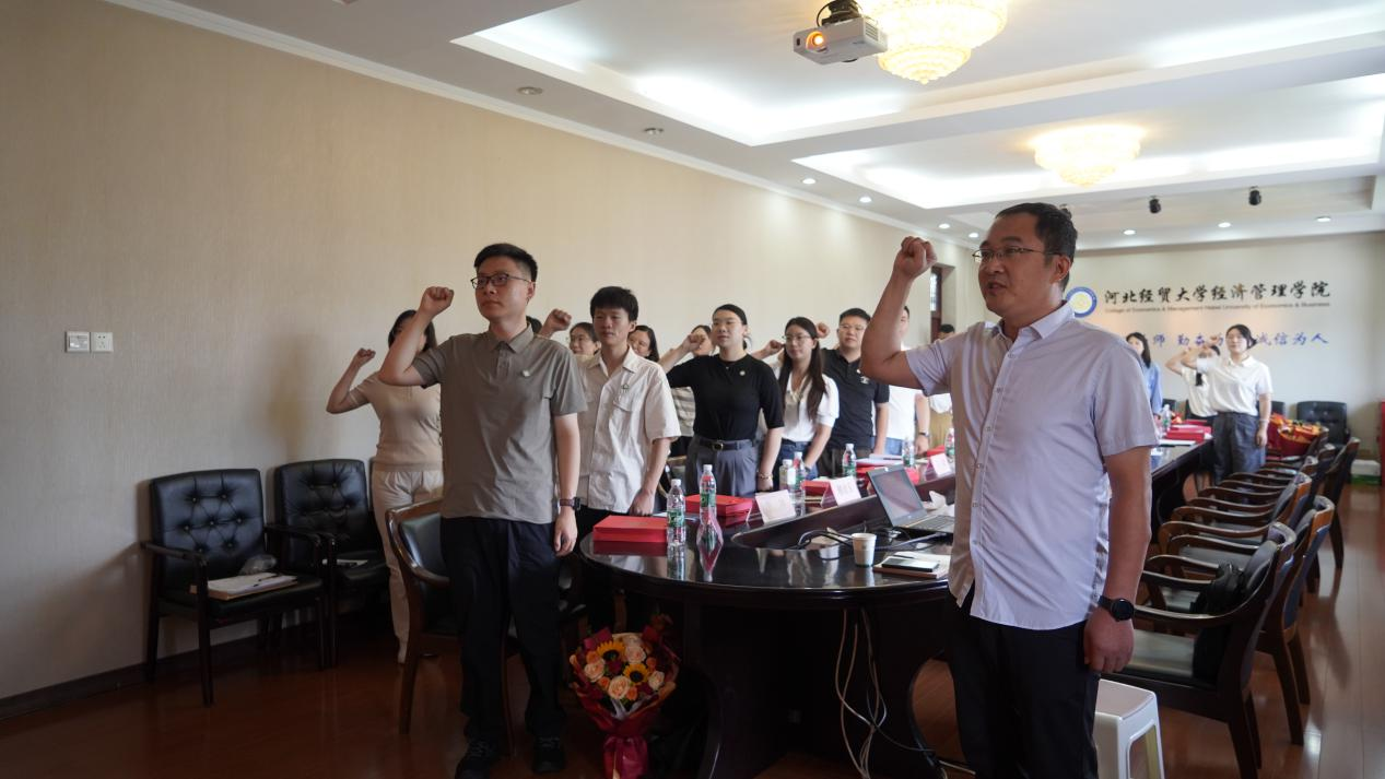 随后,老教师代表为新教师佩戴院徽并送上鲜花,表达公司对于新入职教师的诚挚欢迎与殷切期盼。14名新教师在经济系副书记郑庆国的带领下庄严地宣读了《入职誓词》,郑重地签订了师德承诺书。