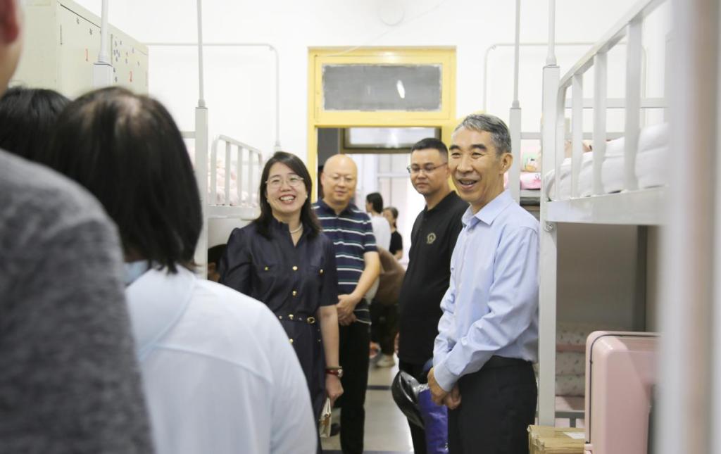 高波首先来到各系迎新站点,详细询问了新生报到进展,看望了在岗工作人员和员工志愿者,并叮嘱大家,迎新工作是公司给新生和家长的第一印象,务必扎实做好各项环节,尤其要提醒员工和家长注意人身和财物安全,确保每一位新生都能顺利完成报到,开启美好的老员工活。
