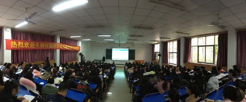 张欣巧总裁以“当我遇见你,就是中国力量”为题,从“自己的成长经历”、“集团的介绍”、“对同学们的寄语”三个方面展开了讲述。张欣巧总裁以她自己的工作经历和成长感悟,勉励同学们要努力学习,用知识来充实自己;又以天俱时集团人性化的经营模式不断学习地发展理念鼓励同学们,要树立终身学习的理念,增强就业意识,做好职业生涯规划,充分用好大学时光,把有限的时间投入到努力奋斗中去。