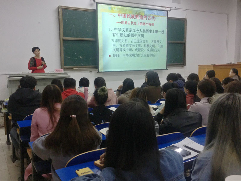 柴艳萍教授以中华民族伟大复兴与科学社会主义新境界为主题,联系人类文明的发展史,依次介绍了中华民族辉煌的古代、中华民族备受磨难的近代、中国特色社会主义的胜利和中华民族的伟大复兴,结合十九大报告详细解读了“三个意味着”和“四个自信”。