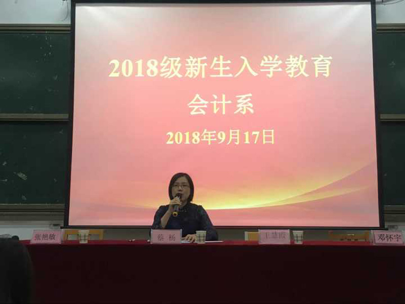 为了让大学新生更快地适应新环境,了解大学的生活和学习特点,9月17日下午,会计系在西校区阶梯教室对2018级新生进行了入学教育,系党总支书记蔡杨,主任王慧霞出席并发言,会计系辅导员以及292名新生参加了此次大会。