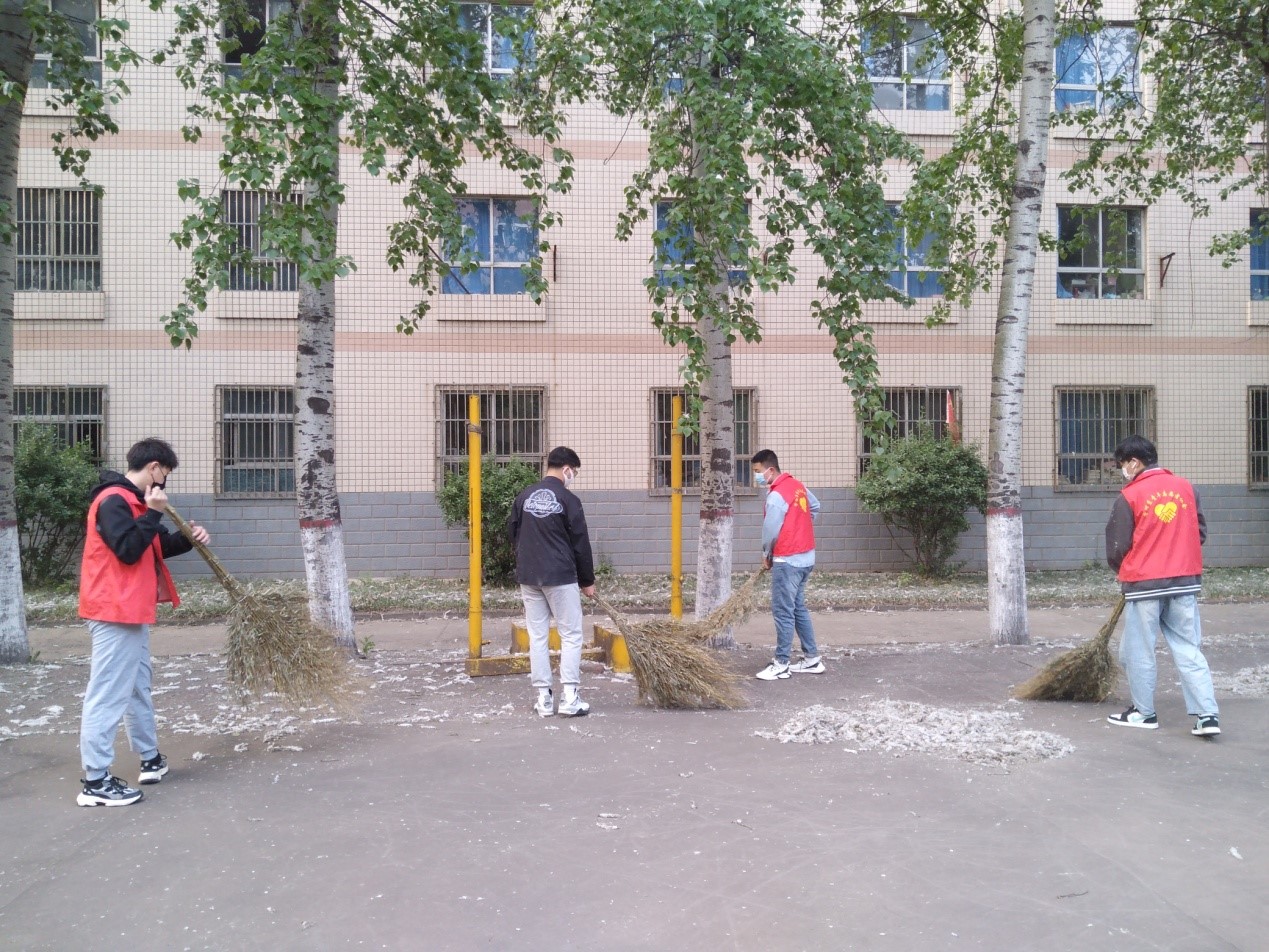 4月12日下午3:00,管理系56名党员和100名员工干部及青年志愿者成员依次对操场草坪、跑道、外侧地面及篮球场进行打扫,并派6名同学到宿管中心参与对隔离库房物品的分拣工作。