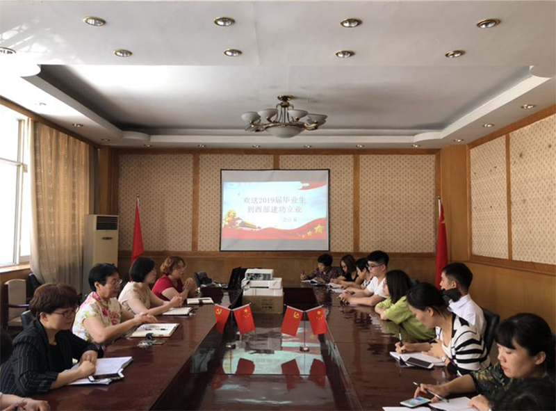 6月14日上午,会计系在西区一楼会议室召开欢送2019届毕业生到西部建功立业座谈会。会计系党总支书记蔡杨、主任王慧霞、全体辅导员以及选择去西部志愿服务和援藏专项的4名同学参加了此次会议。