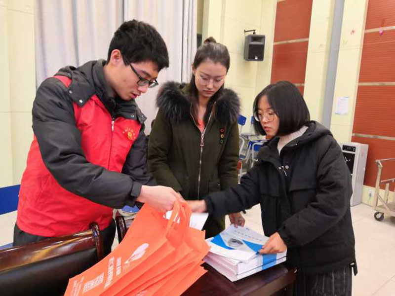 活动现场气氛热烈,同学们积极布置会场,搀扶老人进场入座,给老人分发鸡蛋牛奶等慰问物品,在专业医生的指导下边学边做一对一的给老人按摩。