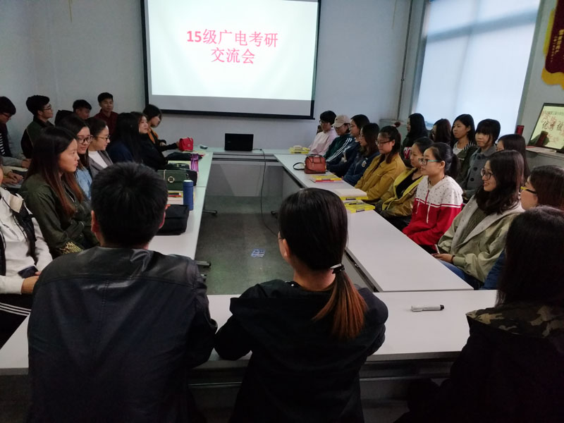 为了进一步提高班级员工的考研热情,了解更多考研信息, 掌握相关技巧,10月13日下午,文法系15级广电班在行政楼413举办考研经验交流会。交流会邀请公司2011级广电、2013级广电考研成绩优异、经验丰富的孙志军、张若云和赵愿与同学们交流,交流会由辅导员秦晓燕老师主持。