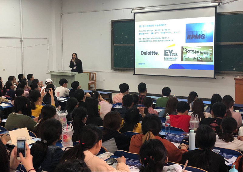 三位老师分别从网申核心问题的考量因素、成绩和国际专业证件对于国际四大事务所申请的加分点、实习生应聘问题等方面进行阐述,分享自己的人生经历,告诉同学们努力就会有收获。