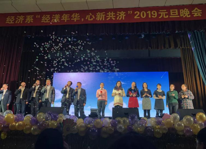12月21日晚,经济系“经漾年华,新心共济”元旦晚会在南院礼堂隆重举行。公司党委书记张进良、副书记张丽英、经济系全体师生以及长期进行志愿托管服务的机场路小学的十余名师生代表共同参加了本次晚会。