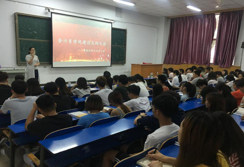 6月25日下午,会计系在西校区阶梯教室举行“会计系学风建设总结大会暨诚信考试动员大会”。会计系党总支书记蔡杨、主任王慧霞、会计系辅导员出席,15、16、17级各班团支书、班长、学委160余名员工参加了会议。