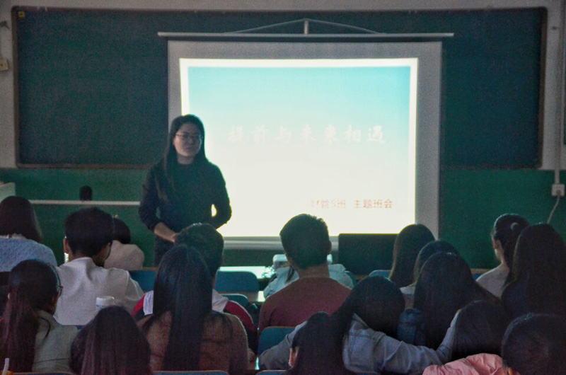 4月15日下午,管理系王丽君老师携2014级财务管理2-5班在1教406开展了“提前与未来相遇”的主题班会,拉开了管理系辅导员班会比赛的序幕。管理系党总支书记刘钺及全体辅导员进行了观摩。