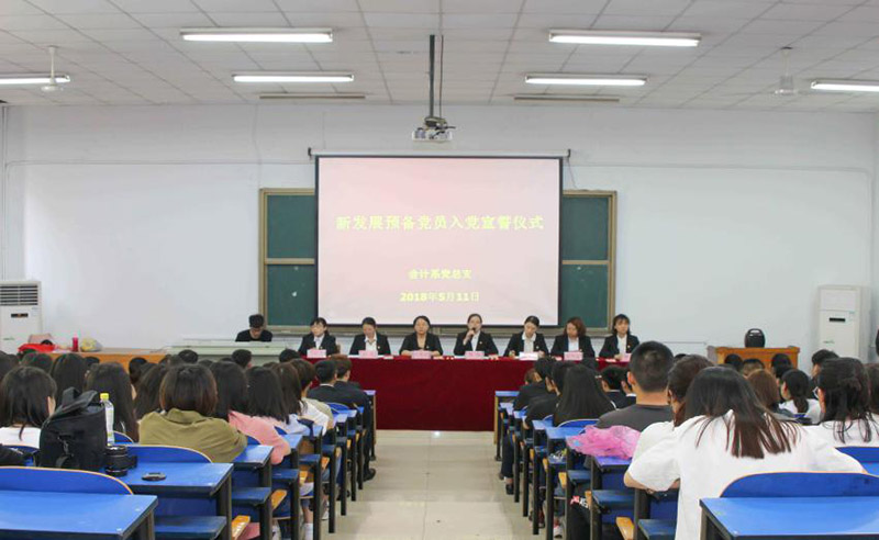 2018年5月11日下午,会计系党总支在西校区召开了预备党员宣誓大会,出席此次大会的有公司组织部部长陈玲、会计系党总支书记蔡杨、会计系党总支委员王慧霞、张艳敏、邓怀宇和樊璠,同时参加会议的有57位新发展员工党员以及本学期确定的入党积极分子和发展对象共计150人列席了会议,会议由总支委员孙韦主持。