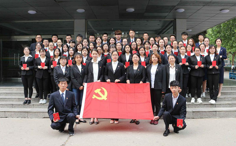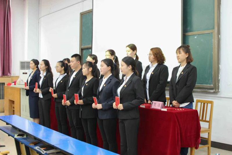 会计系党总支委员王慧霞宣读了公司党委关于接收57位新党员的批复。在总支委员的带领下,57位新发展党员面向党旗,庄严宣誓。宣誓完毕后,全体总支委员和组织部长陈玲向每位预备党员颁发了《中国共产党章程》,佩戴党员徽章。最后,由预备党员代表发言,宣誓仪式在庄严的国歌声中圆满结束。会后,本期新发展党员合影留念。