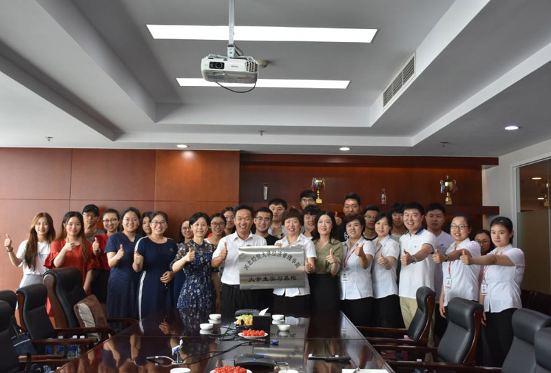 管理系暑期专业调研小分队师生与美食林集团副总贾国萍、各部门经理及职工代表进行了见面和交流,双方分别介绍了各自的基本情况,并就共同建立“老员工实习基地”签订了长期合作协议,同时唐振龙代表公司对美食林集团授予“suncitygroup太阳集团老员工实习基地”匾牌。