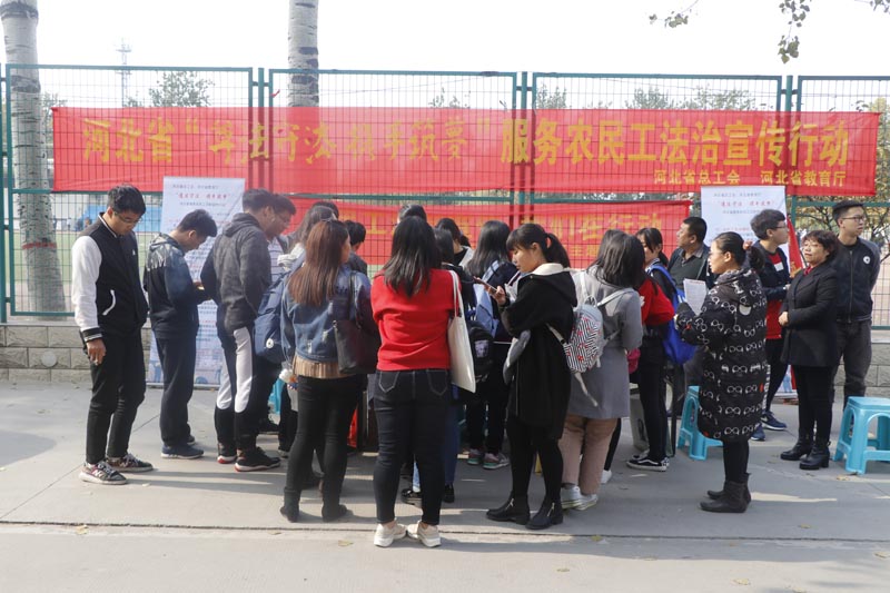 为学习贯彻十九大报告关于“提高全民族法治素养,加大全民普法力度”的要求,11月8日,2015级法学1、2班在辅导员马天齐的带领下,在校园内进行了“农民工法制宣传,我们在行动”主题团日活动。