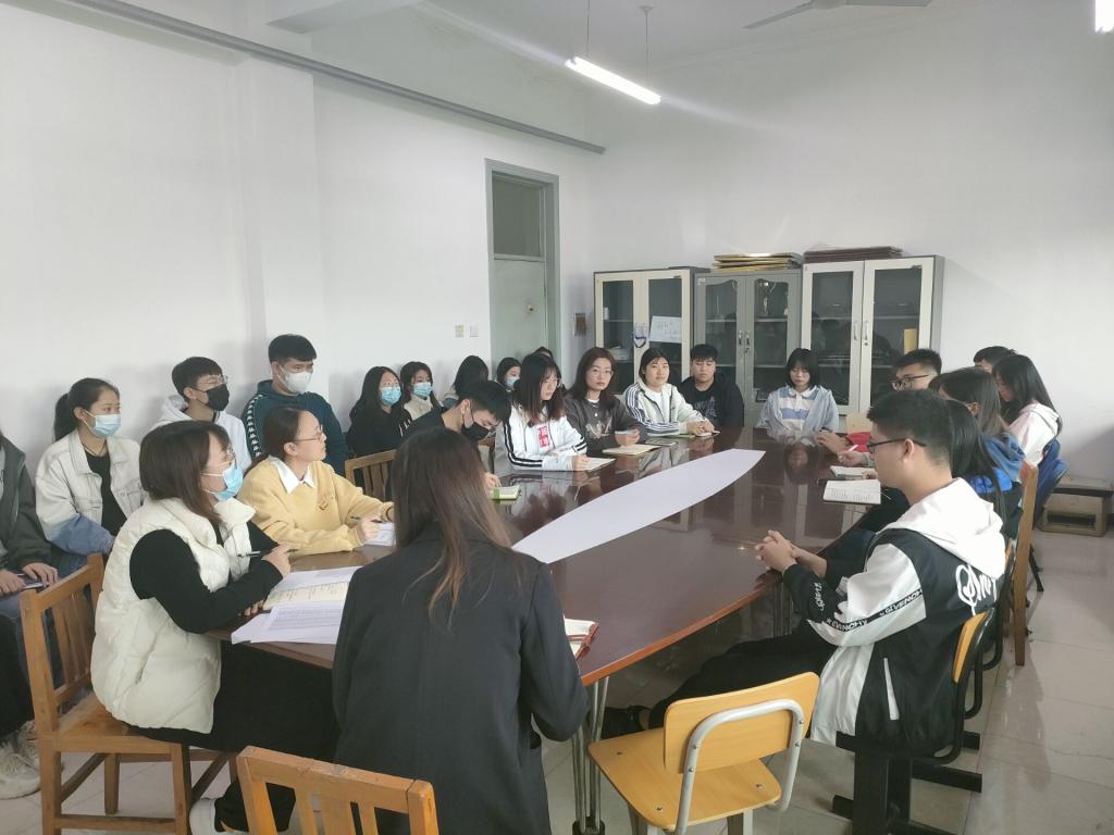 在团学干部座谈会上,团学干部代表围绕青年员工思想政治教育、员工组织整体规划、以及校园文化建设等方面进行了交流,并提出意见建议,与会老师给予了详细的回答。贺丽蕊强调要将团学干部座谈会制度化,发挥好师生的桥梁纽带作用;员工干部要发挥“主人翁”的作用,加强自律,共同推进我系员工工作的开展。最后,陈玲要求在疫情防控常态化下,团学干部要发挥少数关键作用,提高政治站位,着力提升分辨思考能力和学习能力,勇担使命,不负韶华。