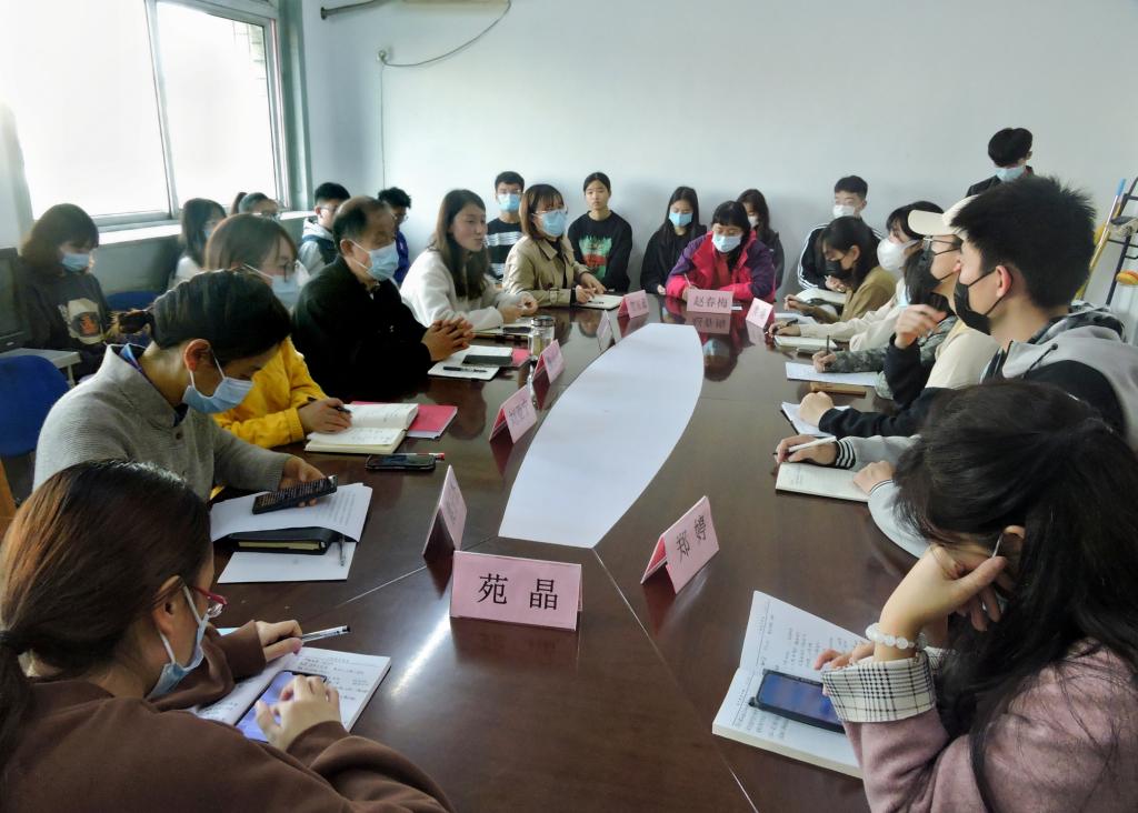为扎实开展好“我为师生办实事”实践活动,商务系党总支始终坚持以员工为中心,于2021年10月29日和30日在会议室召开了以“使命勇担当,奋斗正当时”为主题新生交流会和团学干部座谈会。会议严格遵守防疫要求,系党总支书记陈玲、系主任张学引、全系辅导员及相应员工代表参加会议。会议均由系党总支副书记贺丽蕊主持。