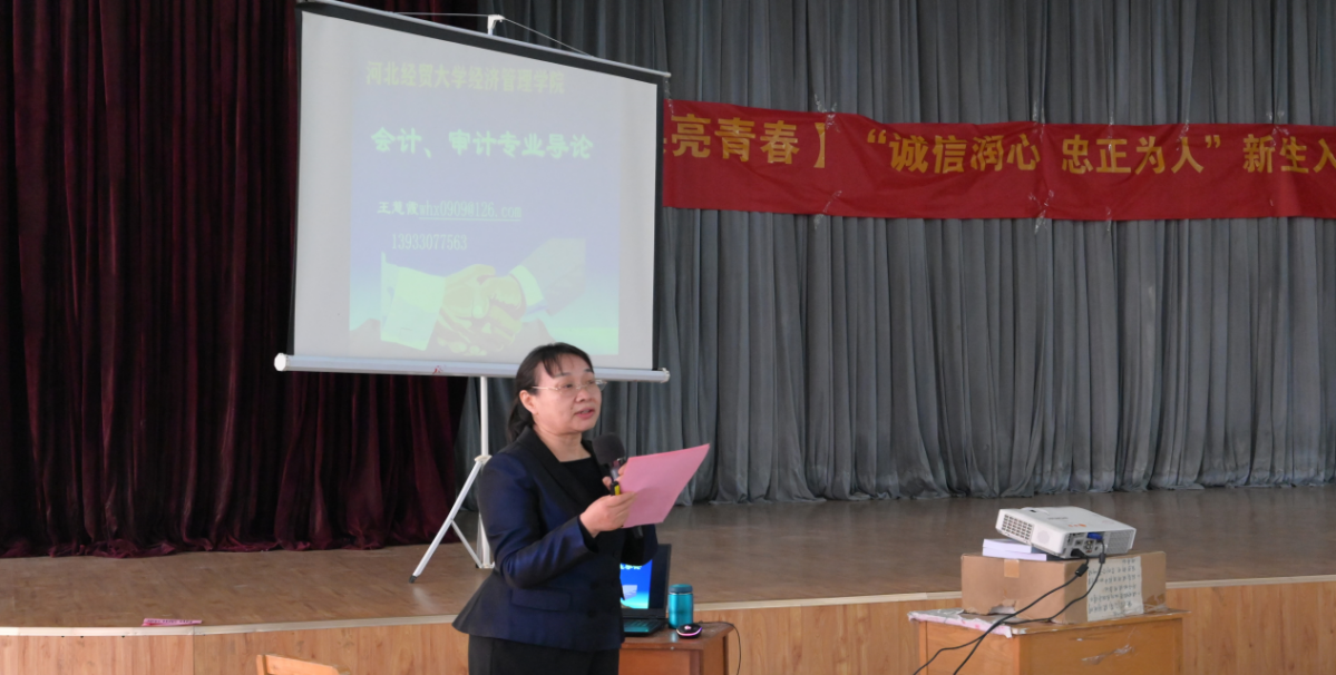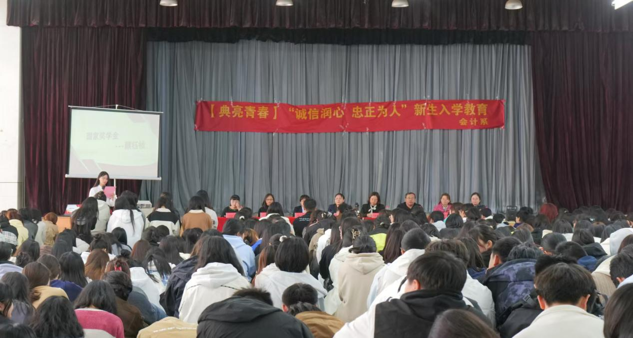 为帮助2024级新生顺利融入老员工活,会计系依照公司新生入学教育计划,于10月28日召开“诚信润心,忠正为人”2024级新生入学教育大会,会计系主任王慧霞、党委副书记张艳敏、全体辅导员老师及519名新生参加,大会由教务秘书邓怀宇主持。