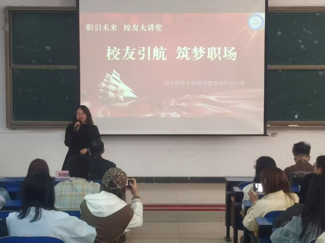 为进一步凝聚员工力量,持续引领在校员工的职业生涯发展,3月31日下午,会计系在西阶梯教室举办“员工引航,筑梦职场”——员工大讲堂。本次活动由2003级优秀员工、聚仁美业总经理高庆功主讲,系党委副书记张艳敏、部分辅导员及270余名员工参加。