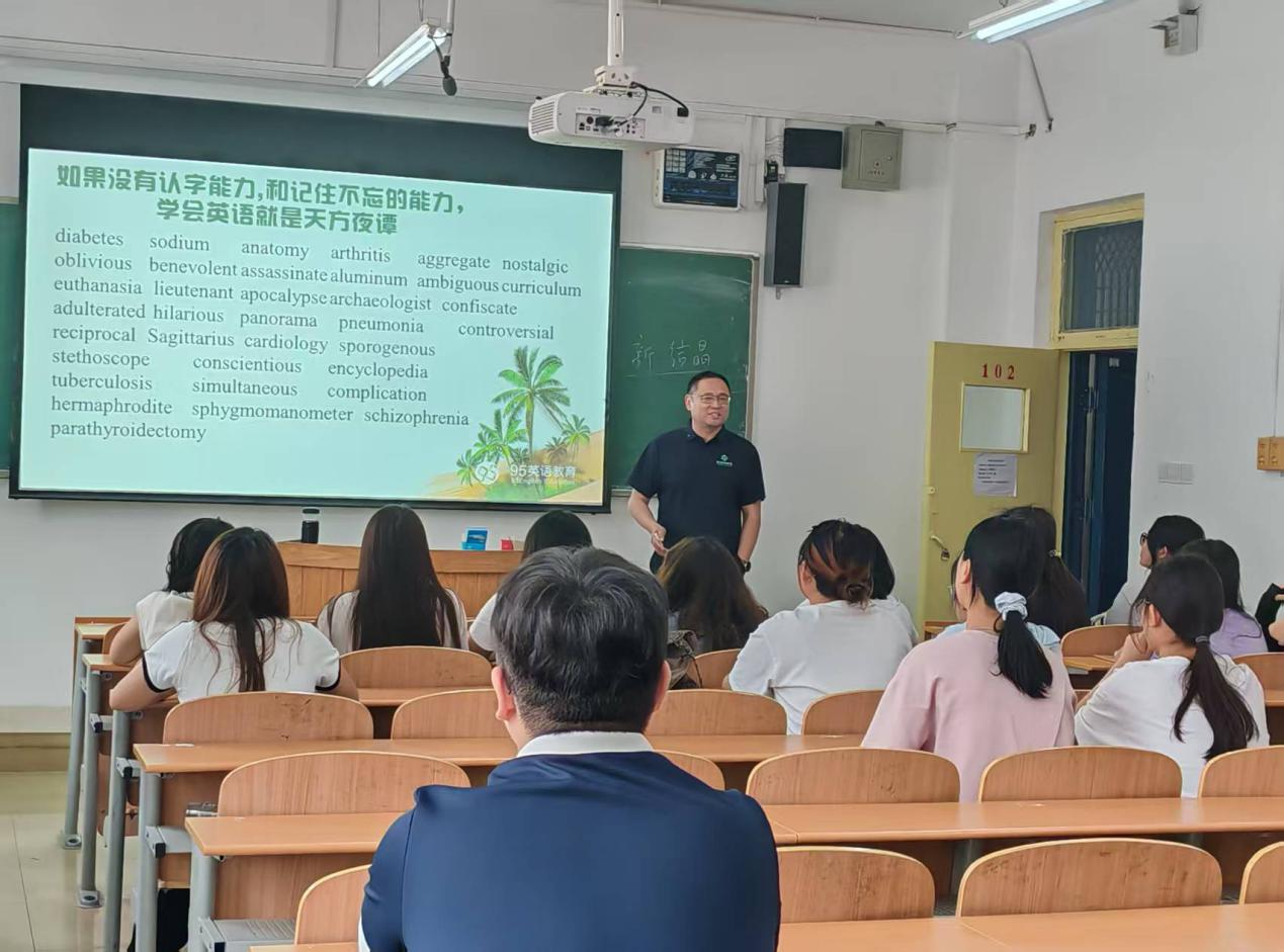 95教育集团创始人苏建全老师受邀为同学们讲授特色英语学习体系,并重点围绕英语语法、英语单词拼写和记忆等学习方法做了详细的解读。讲座中,苏建全以丰富的数据资源向同学们介绍了英语教学前沿理念,提醒同学们要充分认识到英语学习在就业创业实践活动中的重要性,并就老员工职业生涯规划和就业创业实际给出可行性建议,希望同学们踏准节奏,找到满意的工作。