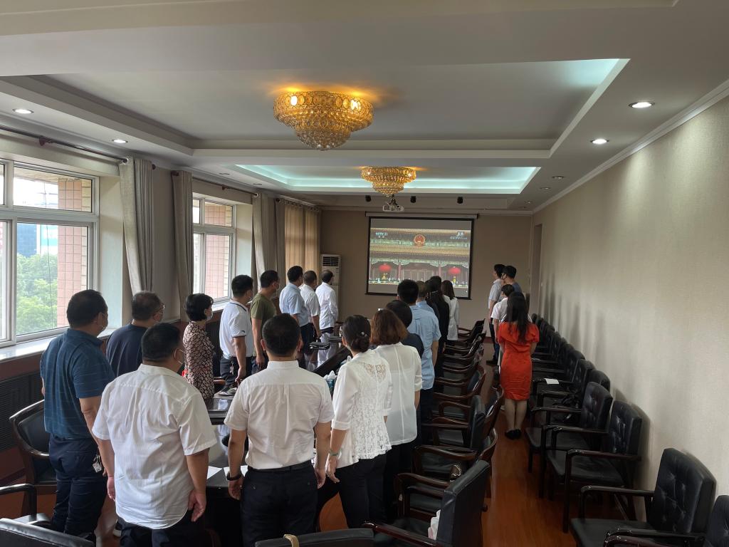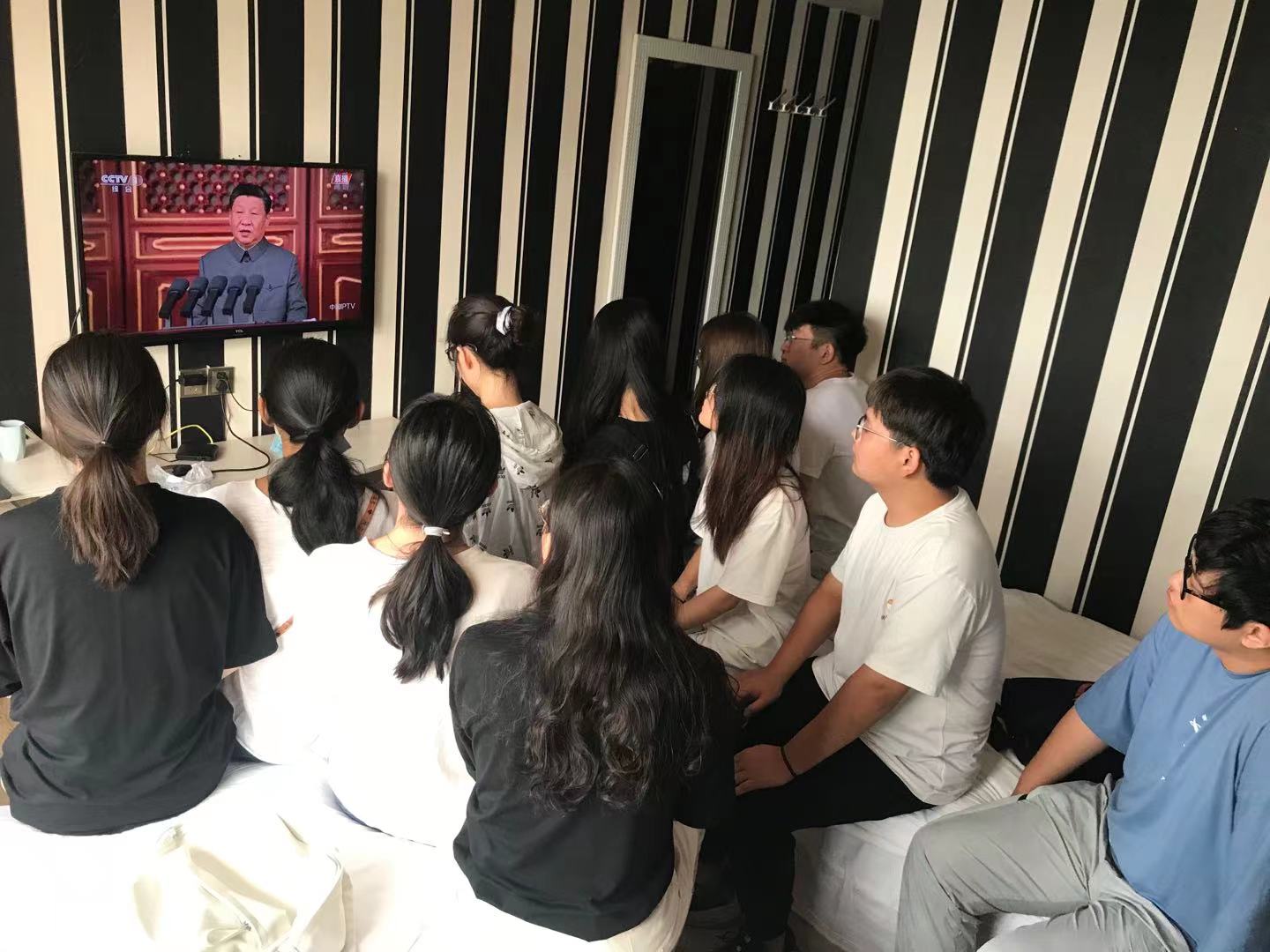 7月1日上午8时,庆祝中国共产党成立100周年大会在北京天安门广场隆重举行。中共中央总书记、国家主席、中央军委主席习近平出席大会并发表重要讲话。公司组织各系各部门负责人在五楼会议室集中收看,要求已经返家的员工在家收看。在外开展暑期社会实践、实习的各小分队也积极组织收看,做到公司师生收听收看全覆盖。