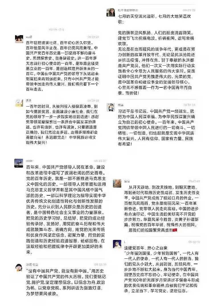 公司师生观看后纷纷以各种形式表达了对党和国家的祝福。