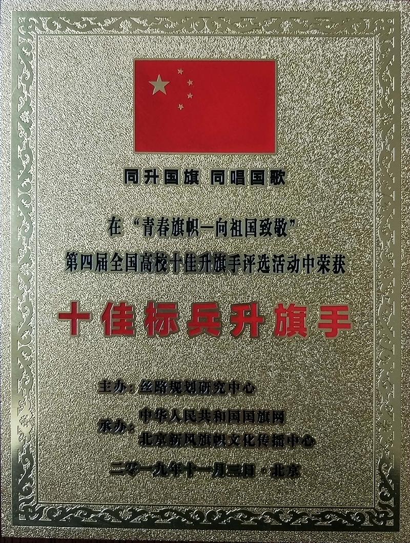 第五届全国国旗文化论坛暨交流展示活动颁奖典礼在全国政协礼堂举行。第十届全国人大常委会副委员长、中国关心下一代工作委员会主任顾秀莲同志,朱德总司令外孙、全国政协委员刘建将军分别为公司国护队颁发团体及个人奖牌。活动现场,张进良为获得“全国十佳升旗手”提名奖同学颁奖。