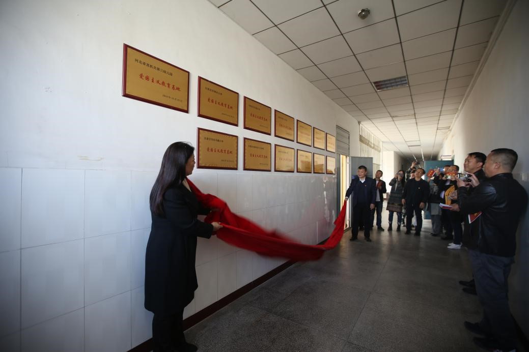 10月25日下午,河北省德育共同体、省青少年校外教育研究会、石家庄市第28中学等13家单位爱国主义教育基地挂牌仪式在公司国旗文化教育展厅举行,河北省教育厅德育研究中心主任蔡杭州出席了活动,并和公司党委副书记张丽英一同为爱国主义教育基地揭牌。