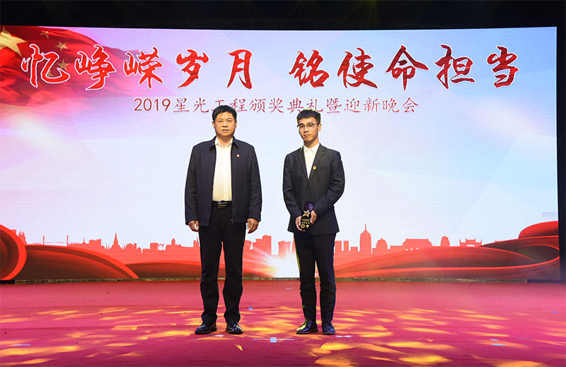 星光工程颁奖环节中,经过推荐、遴选、投票、讲演等多个环节评选出的六名“星光学子”当场揭晓,分别是:商务之星王晨曦,文法之星张子叶,经济之星从琳琳,信息之星宋禹生,管理之星张雪,会计之星刘佳琪;文法系行舟传媒荣获团队之星,信息系主任李福亮老师荣获桃李之星。为更好的树立学习榜样、展示学子风采,今年还首次设立了员工之星。荣获首届员工之星殊荣的是公司2001级法学专业毕业生马文礼,现任中共全国人大常委会机关委员会办公室副主任。马文礼感恩母校培养,并激励学弟学妹们苦练本领、报效祖国。校领导和公司领导分别为获奖师生颁发了荣誉奖章。
