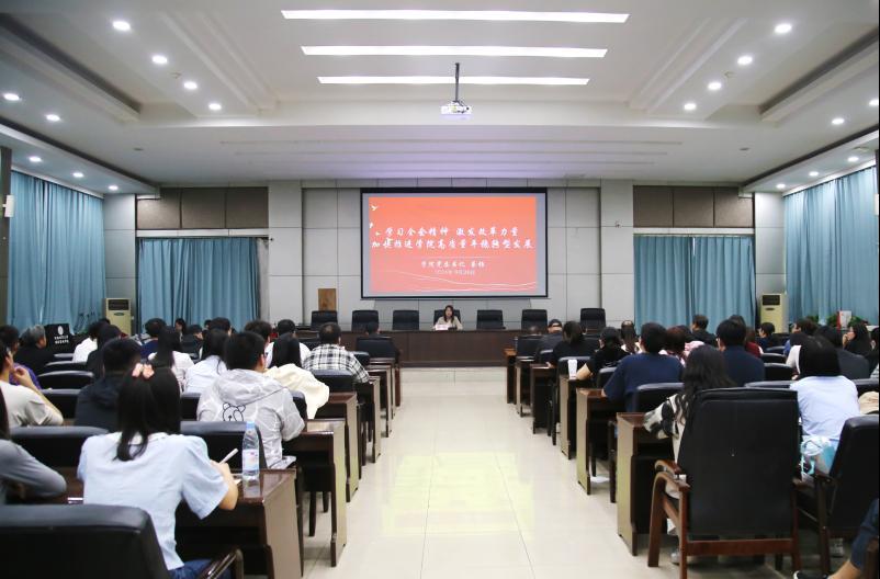 9月26日,公司党委书记蔡杨以“学习全会精神,激发改革力量,加快推进公司高质量平稳转型发展”为题,在图书馆报告厅讲授了党的二十届三中全会精神专题党课,公司领导、各系部负责人、全体教工党员及员工党员代表聆听了党课。