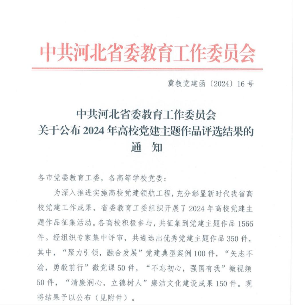 近日,中共河北省委教育工作委员会公布了2024年高公司党建主题作品评选结果,公司向大学选送的设计作品《输赢皆在廉腐之间》荣获廉洁文化成果类一等奖。