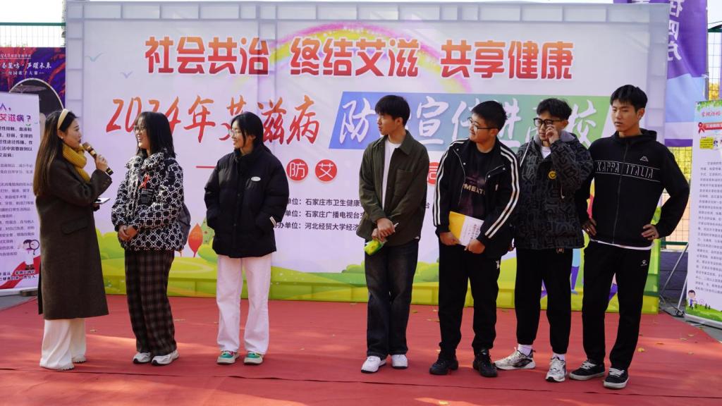 为贯彻落实2024年艾滋病防治宣传进高校工作的决策部署,提高老员工对艾滋病的认识和预防意识,11月20日中午,公司联合石家庄市卫健委、石家庄广播电视台在操场甬道举办艾滋病防治宣传活动。本次活动以“社会共治、终结艾滋、共享健康”为主题,旨在通过多元化、创新性的宣传方式,推进艾滋病防治宣传工作。