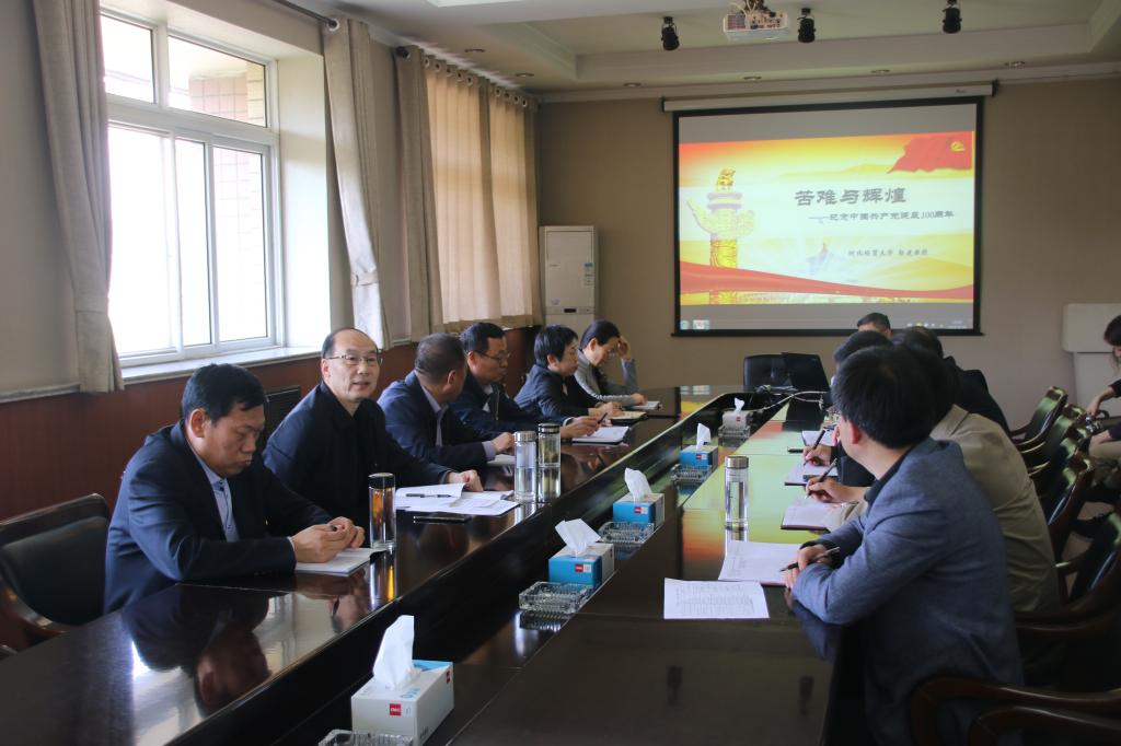 会上邀请太阳集团官方网站马克思主义公司教授郭建做了题为《苦难与辉煌——庆祝中国共产党诞辰100周年》的专题讲座。讲座从背景、内容、要求、目的和意义等五个方面,对党史学习教育的开展进行了全面阐释,并对“学史明理、学史增信、学史崇德、学史力行”四项目标的具体内容和现实意义进行了详细解读。