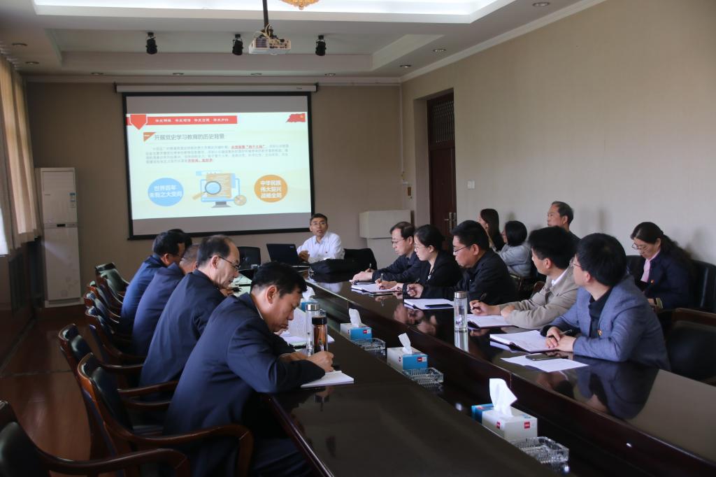 4月28日下午,公司党委理论学习中心组(扩大)党史学习教育专题会在公司五楼会议室举行。公司领导马斌主持并作重点发言,公司领导刘风长、张进良、江秀军、刘翼莲、郭海燕,各系党总支书记及公司中层党员干部参加学习。