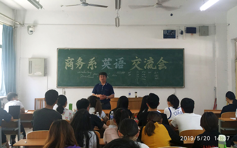 5月20日下午,英语专业副教授,文法系主任赵占亚老师应邀为商务系英语爱好者做学习交流,2018级50余名员工参加。